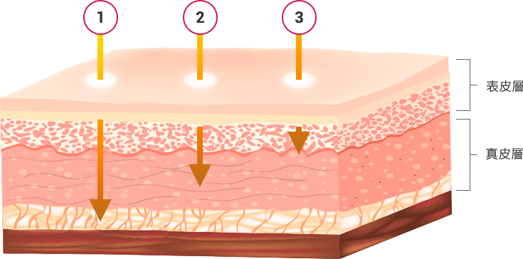 作用在中淺層,掃除中淺層色素斑,同時達到細紋改善及回春效果
